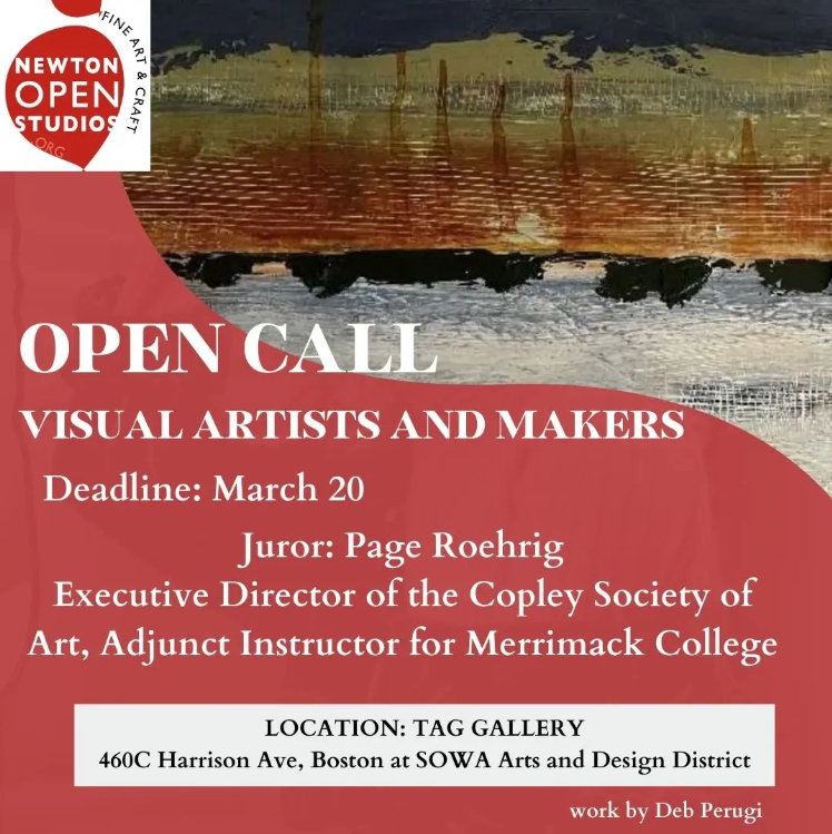 Newton Open Studios Invite: Open Call for ALL Visual Artists SENSE OF PLACE Exhibition Dates: April 3 to 26, 2026 Location: 460C Harrison Ave, 2C, SOWA, Boston ORGANIZATION: Claudia Fiks APPLY HERE Juror: Page Roehrig. Executive Director of the Copley Society of Art, Adjunct Instructor for Merrimack College Newton Open Studios invites all visual artists […]